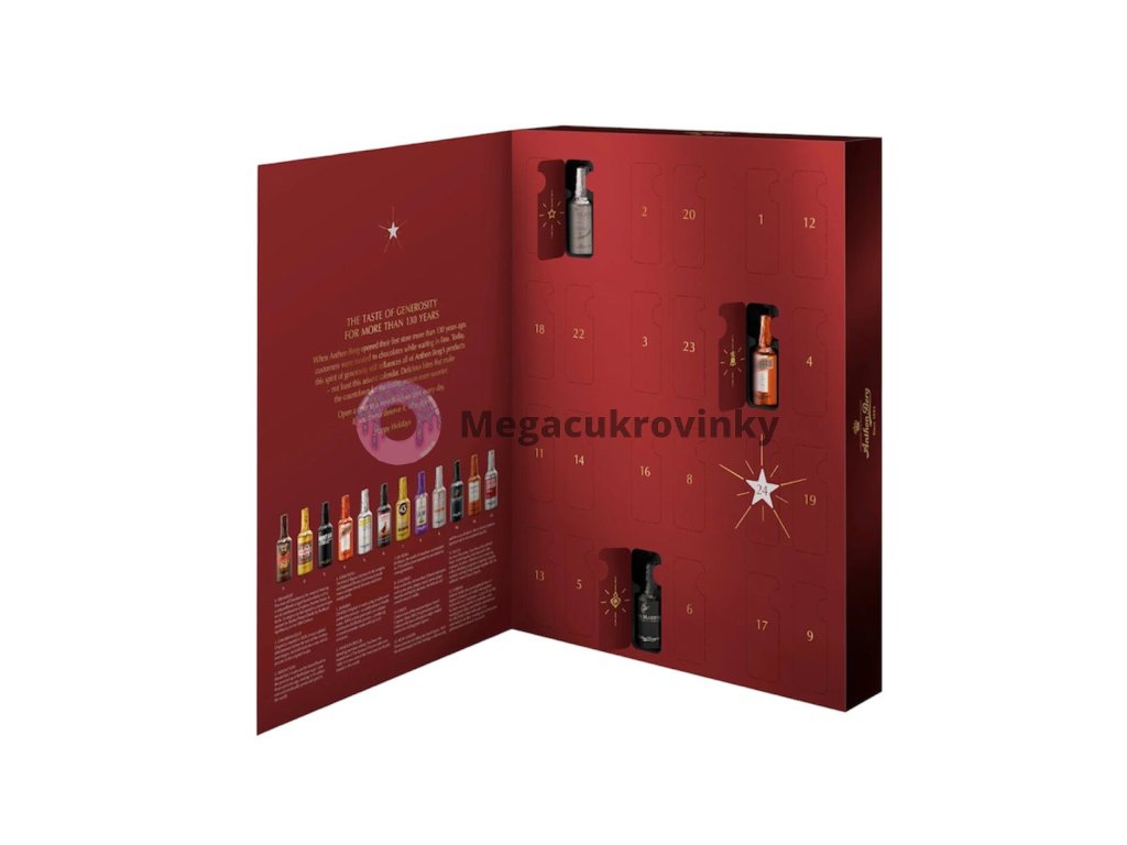 Lahvičky s tmavou čokoládou naplněné sirupem vyrobeným z některých z nejlepších značek lihovin. Balení obsahuje 24 čokolád se značkami jako The Famous Grouse, Cointreau, Drambuie, Jim Beam, Remy Martin, Canadian Club atd.
