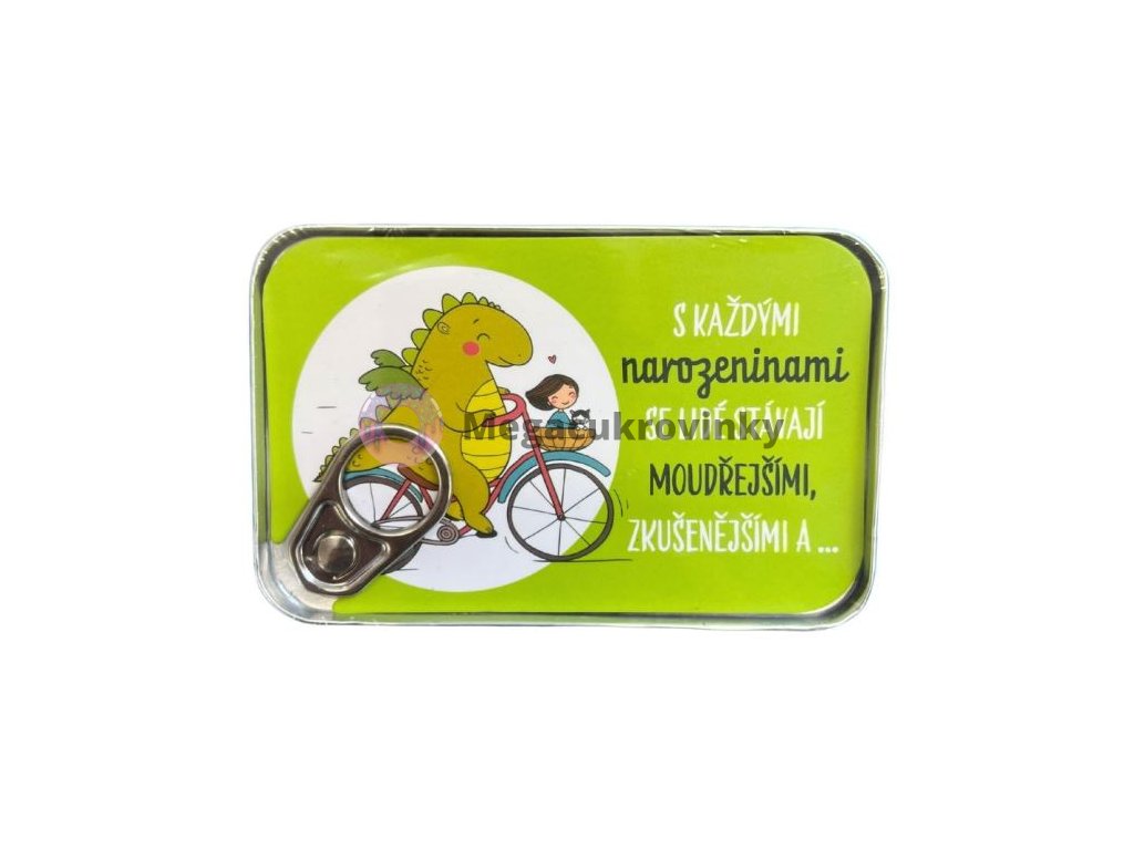 Chystáte se na svatbu nebo narozeniny a hledáte originální a zároveň vtipný dárek pro oslavence? S plechovou kapsou od Albi, která vypadá jako plechovka od sardinek, nešlápnete vedle! Rozměry: 11 x 7 cm Text uvnitř: ... bohatšími! Veselé narozky Instrukce k použití: Do plechovky vložte bočním otvorem přáníčko,peníze nebo dárkový poukaz a opatrně zalepte transparentní samolepkou.Kapsa je připravena k předání.Otevření plechovky pomocí kovového uzávěru je nevratné.Doplňkové parametry