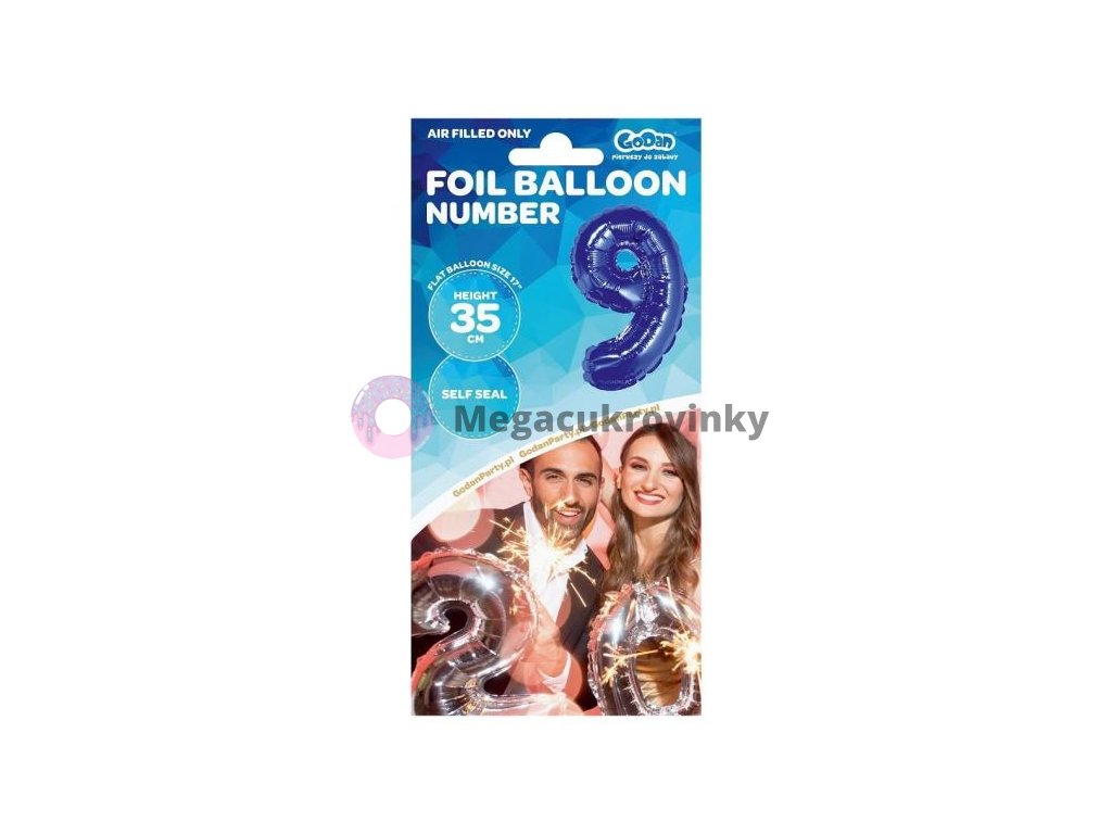 Balón foliový číslice MODRÁ 35 cm - 9 ( NELZE PLNIT HELIEM )