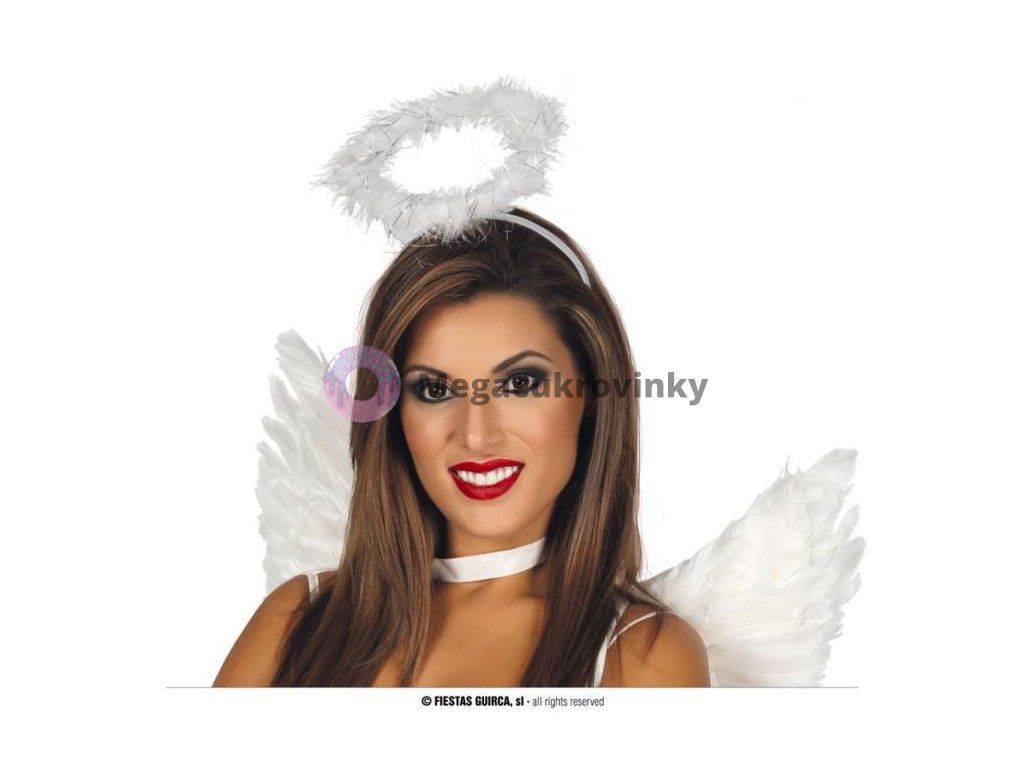 Čelenka se svatozáří je perfektním doplňkem ke kostýmu anděla Svatozář je zdobená hebkým peřím je připevněna pomocí drátku na transparentní čelence. Skvělý doplněk na vánoční besídku, pod vánoční stromeček nebo do fotokoutku.Doplňkové parametry