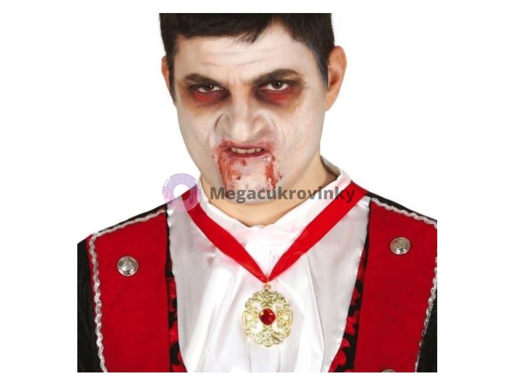 Charakteristickým doplňkem hraběte Drákuly je červený límec a šperky s rubíny. Pokud chcete na Halloween party vypadat opravdu jako ten nejbohatší upíří hrabě, tento zlatý medailon na červené stuze váš kostým skvěle doladí. Vyšperkuje i okouzlující upírku, které neodolá žádný přítomný muž. Obsah balení: 1 ksDoplňkové parametry