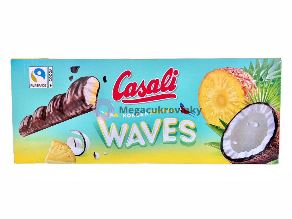 Casali Waves Kokos Ananas je lahodná čokoládová pochoutka, která spojuje exotickou chuť kokosu a ananasu s kvalitní mléčnou čokoládou. Tento snack je ideální pro milovníky sladkých dobrot, kteří ocení harmonii chutí a křupavou texturu v každém soustu.