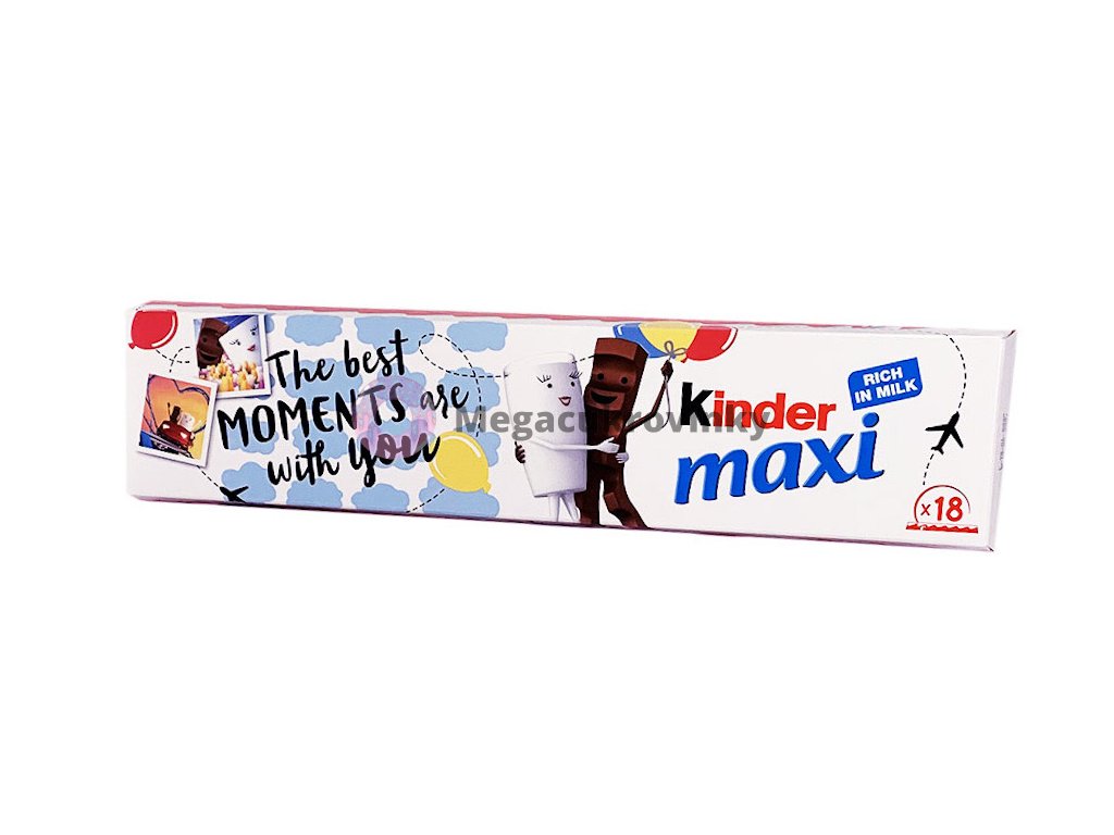 Jedinečná chuť Kinder čokoládky ve větší provedení, to je Kinder Maxi! Tato lahodná tyčinka s mléčnou náplní obalená v tou nejlepší čokoládovou polevou nenechá jeden mlsný jazýček klidný. Nyní navíc ve výhodném balení, které obsahuje 18 samostatně balených Kinder Maxi tyčinek.