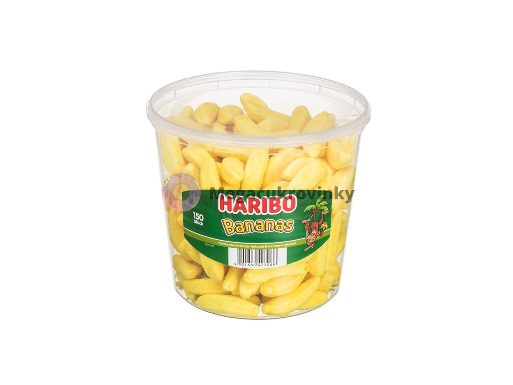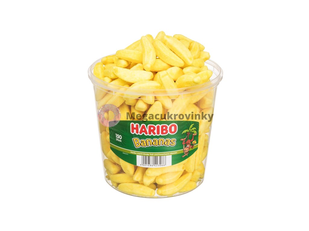 Exotický zážitek s Haribo banány! Tyhle banány nejen vypadají, ale také chutnají, jako ty skutečné! Měkká pěna s příchutí banánu obalená v cukrovém obalu. Navíc se skvělou vůní, kterou ucítíte hned po otevření dózy! Tyhle velké skoro 6 centimetrů velké banány jsou jedny z nejpovedenějších výrobků od Haribo!