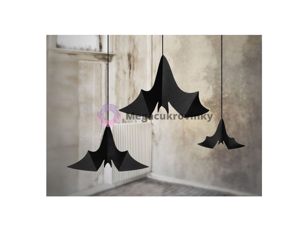 Netopýři k zavěšení - HALLOWEEN - sada 3 ks Chystáte strašidelnou párty či ples? Nesmí vám chybět tyto tři netopýři černé barvy! Skvělá papírová dekorace na Halloween párty. Rozměry:47x23 cm 37x19 cm 31x14 cm Balení obsahuje: 3 ksDoplňkové parametry