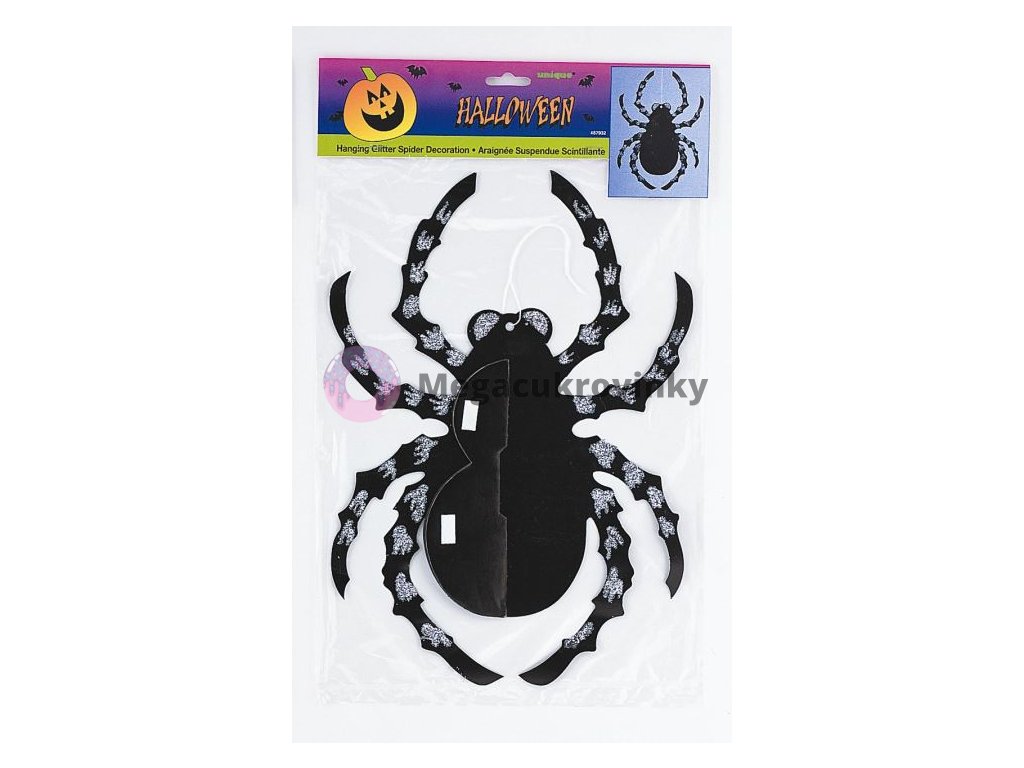 Závěsná dekorace třpytivého pavouka pro hororovou, nebo halloweenskoou párty.
