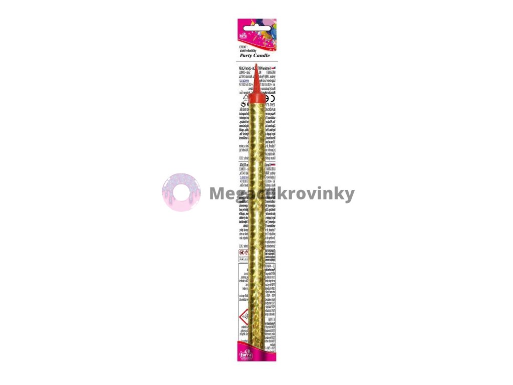 Jedno balení obsahuje 1 kus zlaté párty fontány o délce 26 cm. Žádná párty se neobejde bez této párty fontány! Párty fontána dokonale nahradí svíčky na dortu. Pomocí plastového podstavce snadno a bezpečně zapíchnete do dortu. Fontánka po zapálení prská jako prskavka což vytváří nezapomenutelný efekt pro předávání sladké dobroty oslavenci. Délka trvání efektu: 90 sec. KAT F1 – prodej od 15 let.CLP - Třída nebezpečnosti