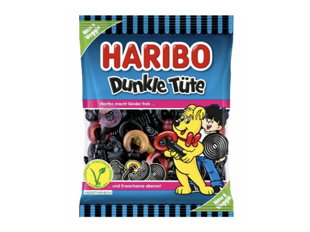 Haribo želatinové bonbóny s lékořicovou příchutí ve tvaru šneka, měsíčku a zvířátek.