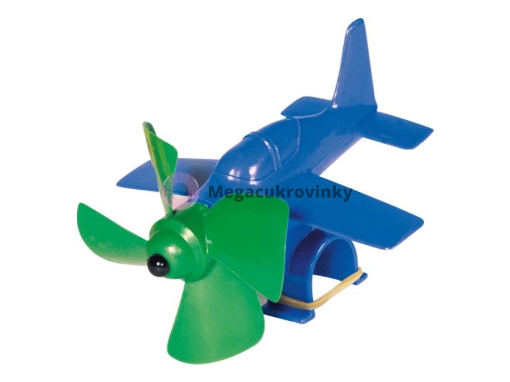 Plastový barevný větrník ve tvaru letadla určený pro umístění na kolo. Zajištění na kole pomocí gumičky.Doplňkové parametry