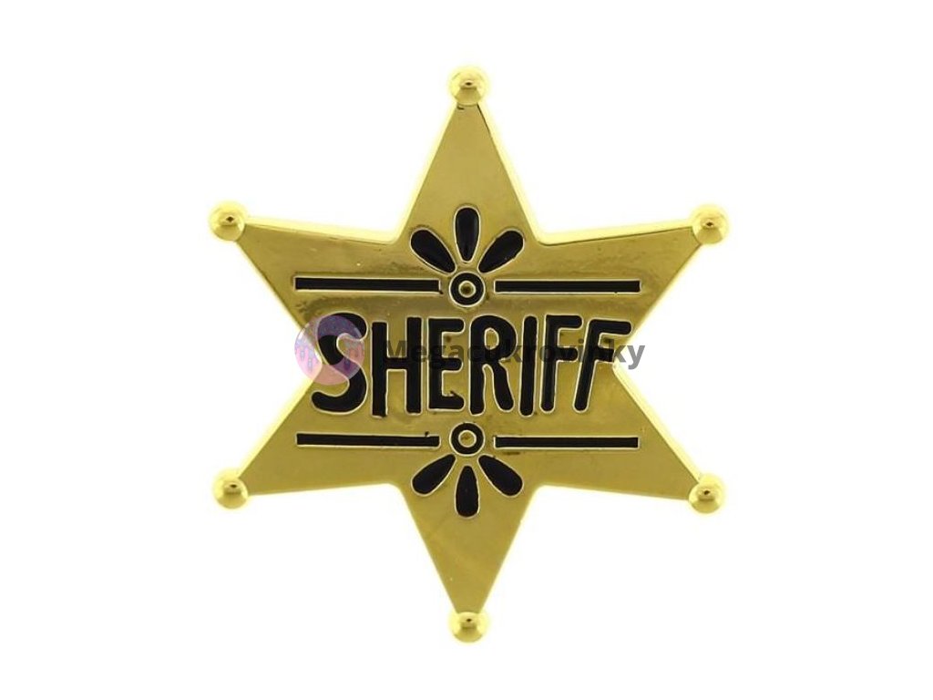 Odznak šerifa je perfektním doplňkem ke kostýmu kovboje nebo šerifa! Skvěle padne jak dětem, tak dospělým na pořádné Western párty Odznak zlaté barvy s černým nápisem o velikosti 6 cm je vyroben z PVC.Doplňkové parametry