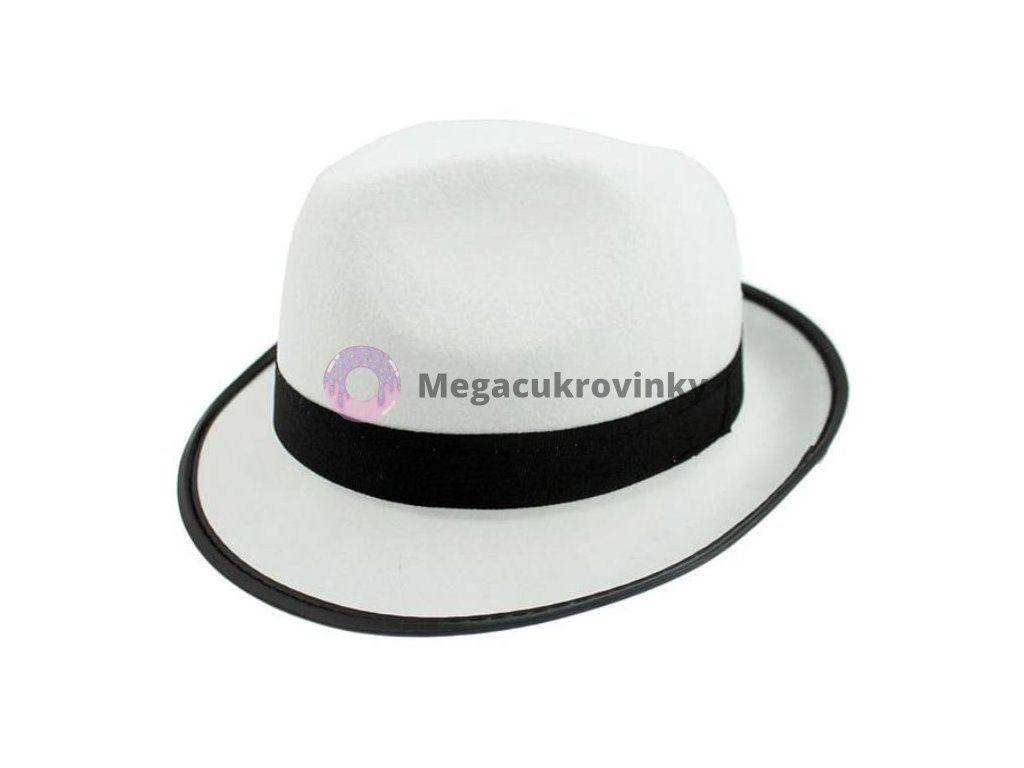 Klobouk Gangster - mafián - bílý s černou páskou - mafie