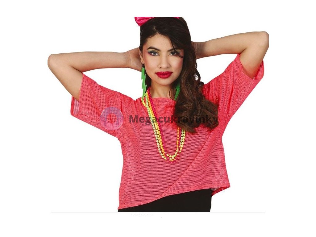 Růžové siťované retro tričko - neon - 80.léta - disco