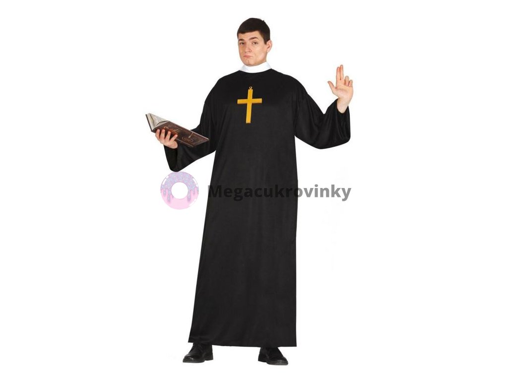 Stylový karnevalový kostým v motivu kněze ! Kostým je možné využít nejen na firemní večírek, halloweenskou párty nebo jen tak pro zábavu s kamarády na karnevalové párty. Staň se největší hvězdou karnevalu! Černý karnevalový kostým kněze pro dospělé obsahuje: roucho s kolárkem.Doplňkové parametry