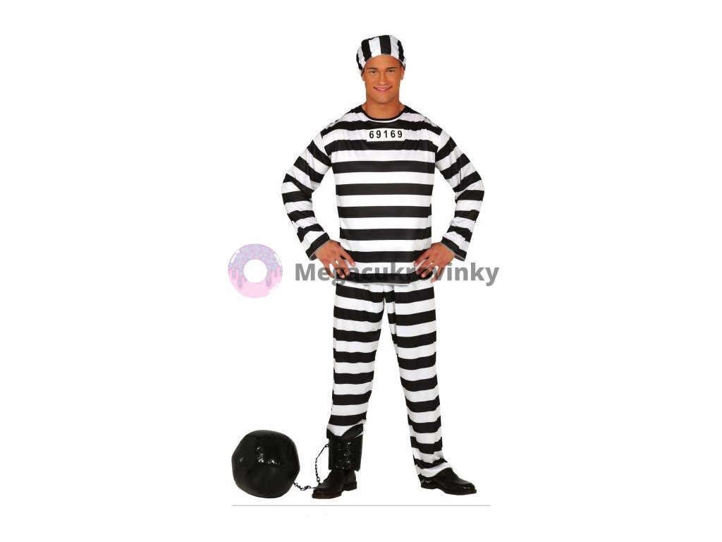 Chystáte se na karneval či párty s kostýmy? Vezměte si tento originální kostým Vězně, se kterým budete určitě hvězda večera. Převlek trestance je vhodný na halloweenskou párty, karneval nebo jiné příležitosti. Kostým Vězně obsahuje: Čepice Triko KalhotyDoplňkové parametry