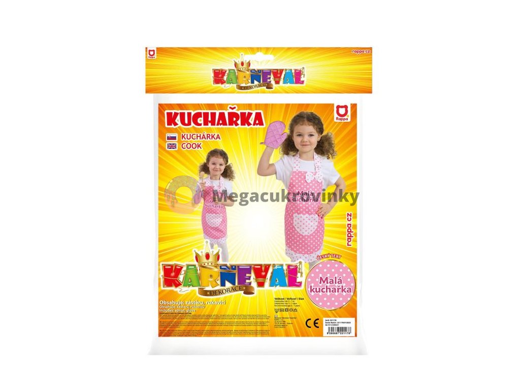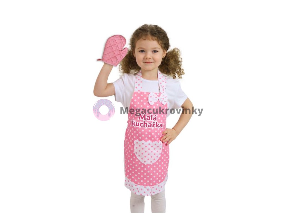 Roztomilá dětská kuchařská zástěra s nápisem Malá Kuchařka v růžovém provedení s bílými puntíky. Tuto vychytávku ocení každá malá hospodyňka při pomoci v kuchyni. Sada obsahuje: zástěru a kuchařskou rukaviciDoplňkové parametry