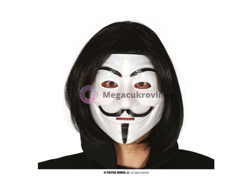 Maska Guy Fawkese (v poslední době notoricky známá spíše jako maska Anonymous) se poprvé objevila v komiksu a filmu V for Vendetta, dnes už zažitá jako symbol hnutí Anonymous. Maska je s přichycením na gumku.Doplňkové parametry