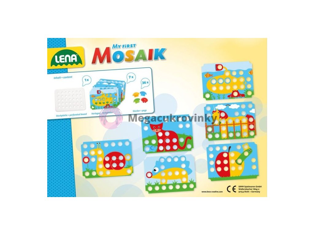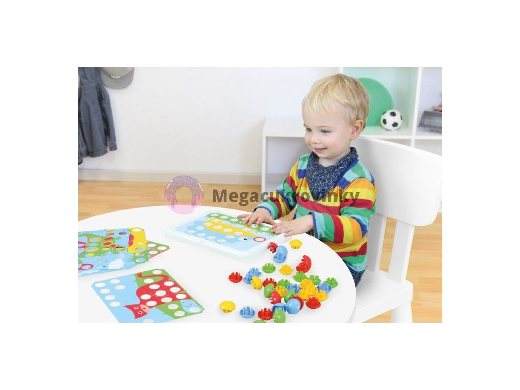 Mozaika určena nejmenším dětem. Díky velkým dírám a kolíčkům, nebudou mít malé ruce problém s umisťováním.Doplňkové parametry