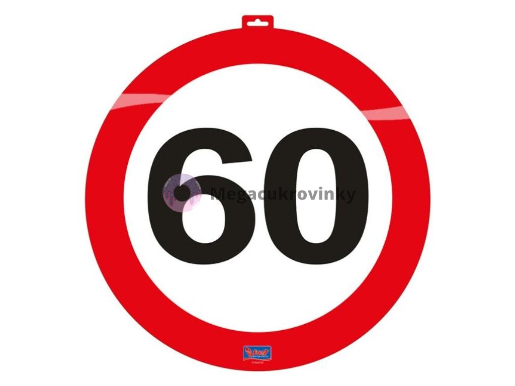 Originální a vtipná výzdoba k 60. narozeninám v designu dopravní značky. Dopravní značka je vyrobena z ohebného plastu a její průměr je 48 cm. Značka má v horní částí oko k zavěšení nebo ji můžete jednoduše pomocí lepicí pásky nalepit například na dveře.Doplňkové parametry