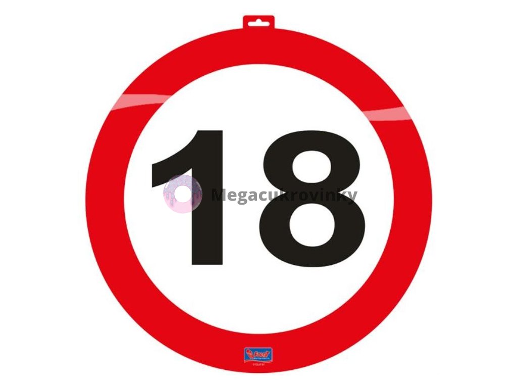 Originální a vtipná výzdoba k 18. narozeninám v designu dopravní značky. Dopravní značka s osmnáctkou je vyrobena z ohebného plastu a její průměr je 48 cm. Značka má v horní částí oko k zavěšení nebo ji můžete jednoduše pomocí lepicí pásky nalepit například na dveře.Doplňkové parametry