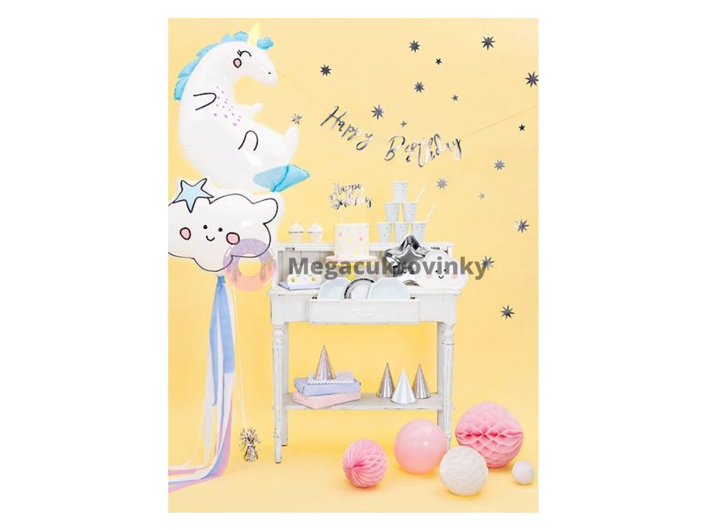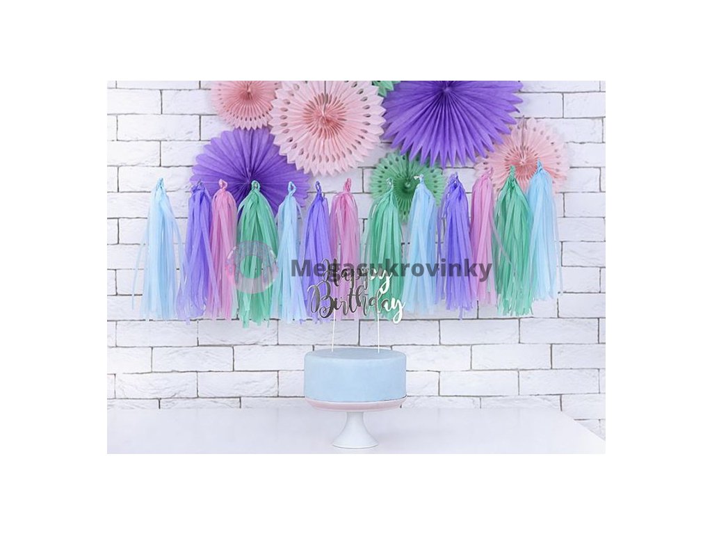 Elegantní zapichovací dekorace na dort "Happy Birthday" nesmí chybět na žádném narozeninovém dortu. Je vyrobená z lesklého stříbrného papíru. Výška: cca 22,5 cm Šířka: cca 21 cmDoplňkové parametry
