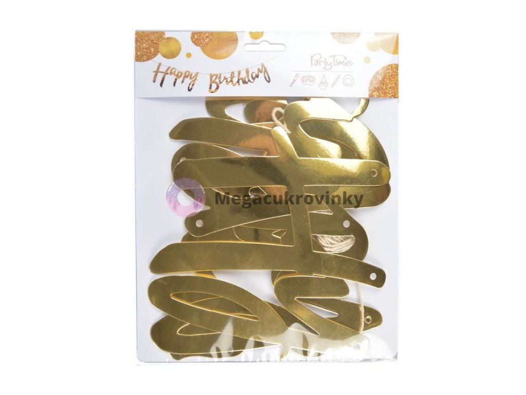 Girlanda narozeniny - Happy Birthday - zlatá, 150 cm