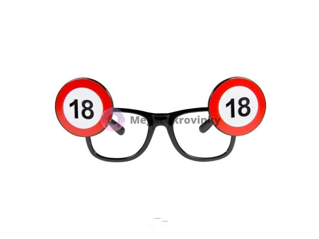 Originální a vtipný párty doplněk k 18. narozeninám v designu dopravní značky. Brýle bez skel jsou vyrobené z plastu a na krajích jsou zdobené číslem 18 ve tvaru dopravní značky. Rozměry: 19 x 7 cmDoplňkové parametry