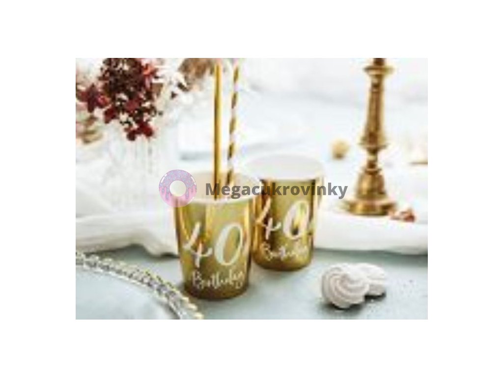 Papírové kelímky ve zlatém lesklém provedení s bílým nápisem „40th Birthday“. Krásný dekorační a praktický doplněk na narozeninovou oslavu. Balení obsahuje 6 ks, 220 mlDoplňkové parametry