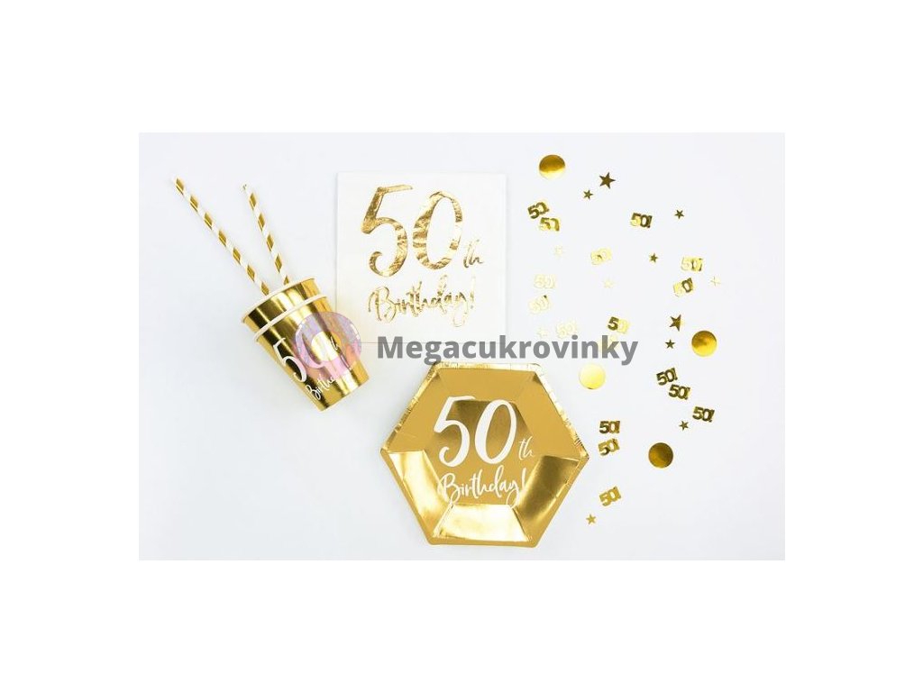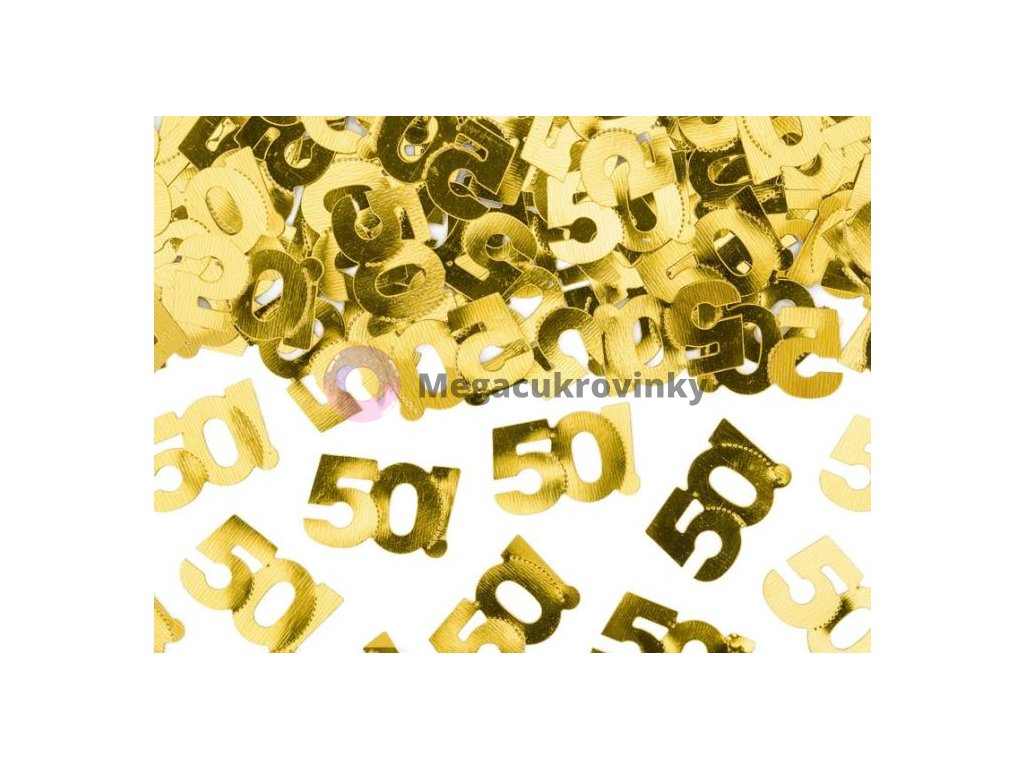 Zlaté narozeninové konfety na stůl ve tvaru čísla 50! Balení obsahuje 15 g konfet.Doplňkové parametry