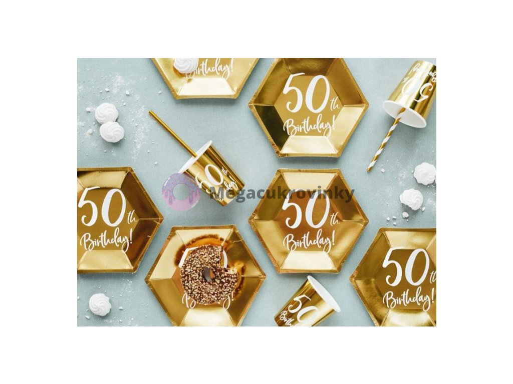 Papírové talíře 50 LET - zlaté - 20 cm, 6 ks