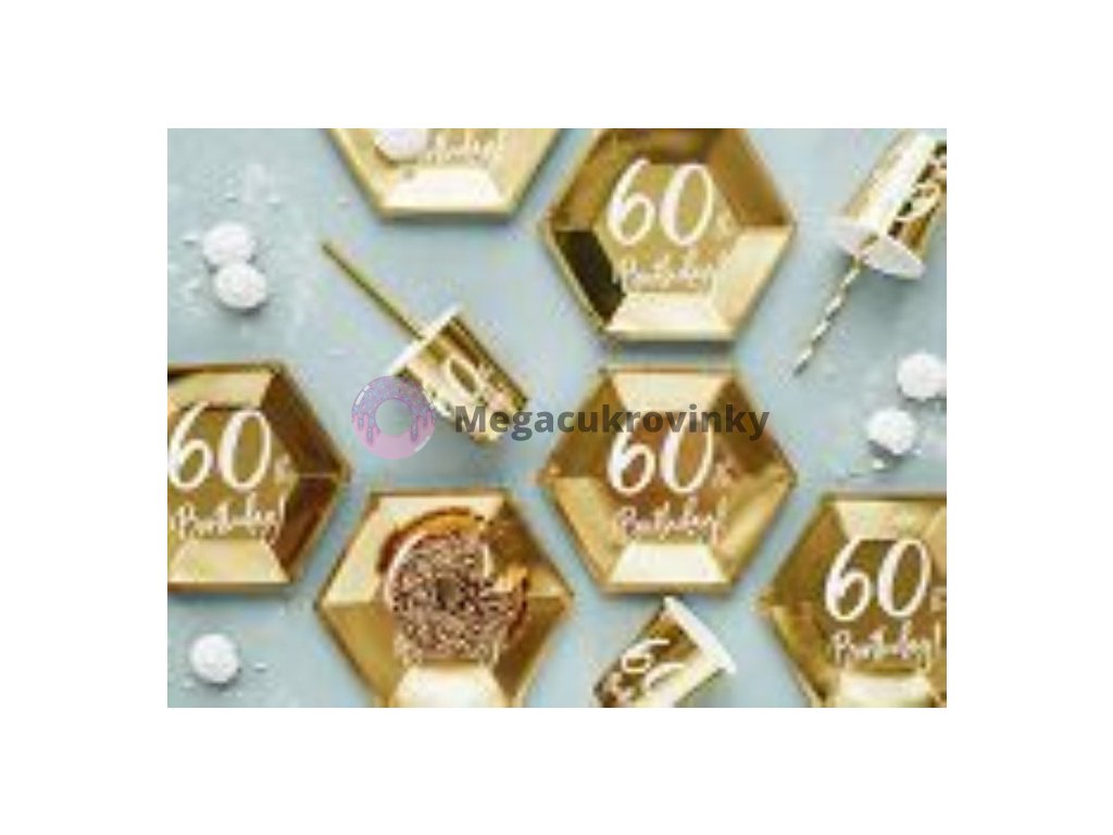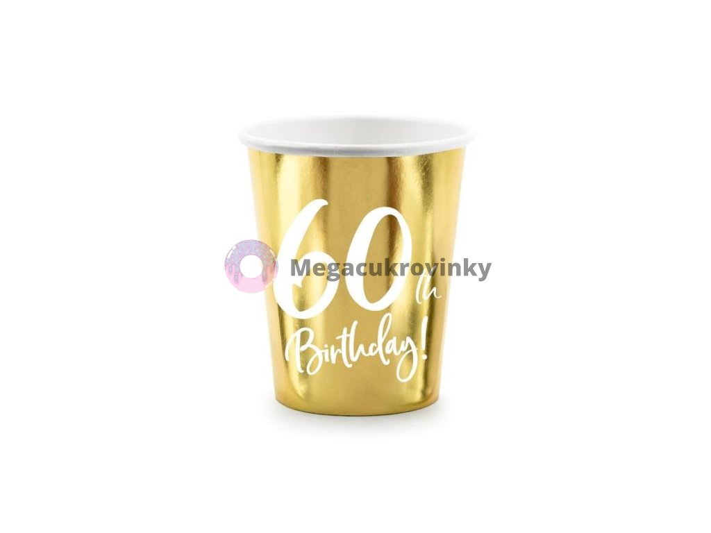 Papírové kelímky ve zlatém lesklém provedení s bílým nápisem „60th Birthday“. Krásný dekorační a praktický doplněk na narozeninovou oslavu. Balení obsahuje 6 ks, 220 mlDoplňkové parametry