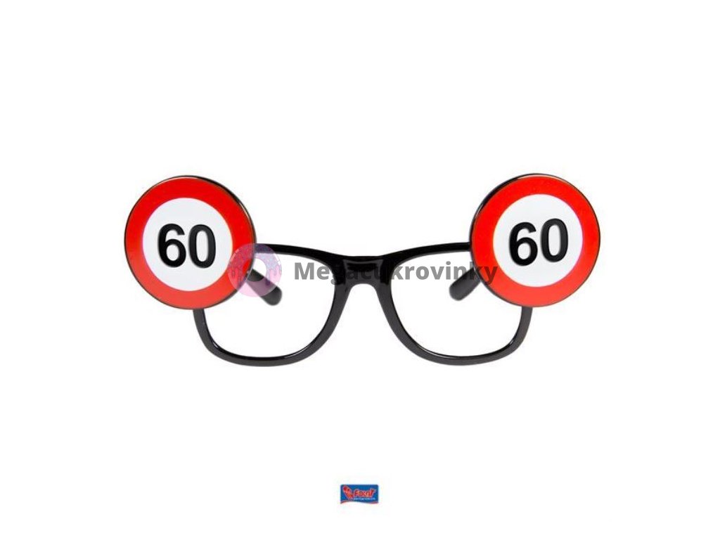 Originální a vtipný párty doplněk k 60. narozeninám v designu dopravní značky. Brýle bez skel jsou vyrobené z plastu a na krajích jsou zdobené číslem 60 ve tvaru dopravní značky. Rozměry: 19 x 7 cmDoplňkové parametry