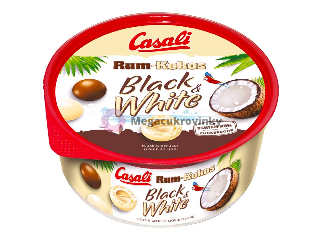 Casali Kuličky Black and White rum-kokos představují lahodnou kombinaci čokolády a exotických chutí, která potěší vaše smysly. Tyto jedinečné kuličky spojují tmavou i bílou čokoládu s kokosovou náplní a nádechem rumu.