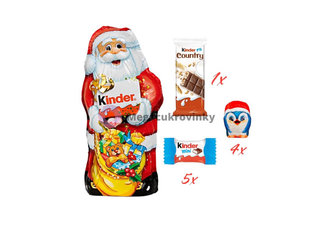 Balení obsahuje: Postavičku Santy Clause, Kinder Country, 5 kinder čokoládek , 4 čokoládky ve tvaru tučňáka.