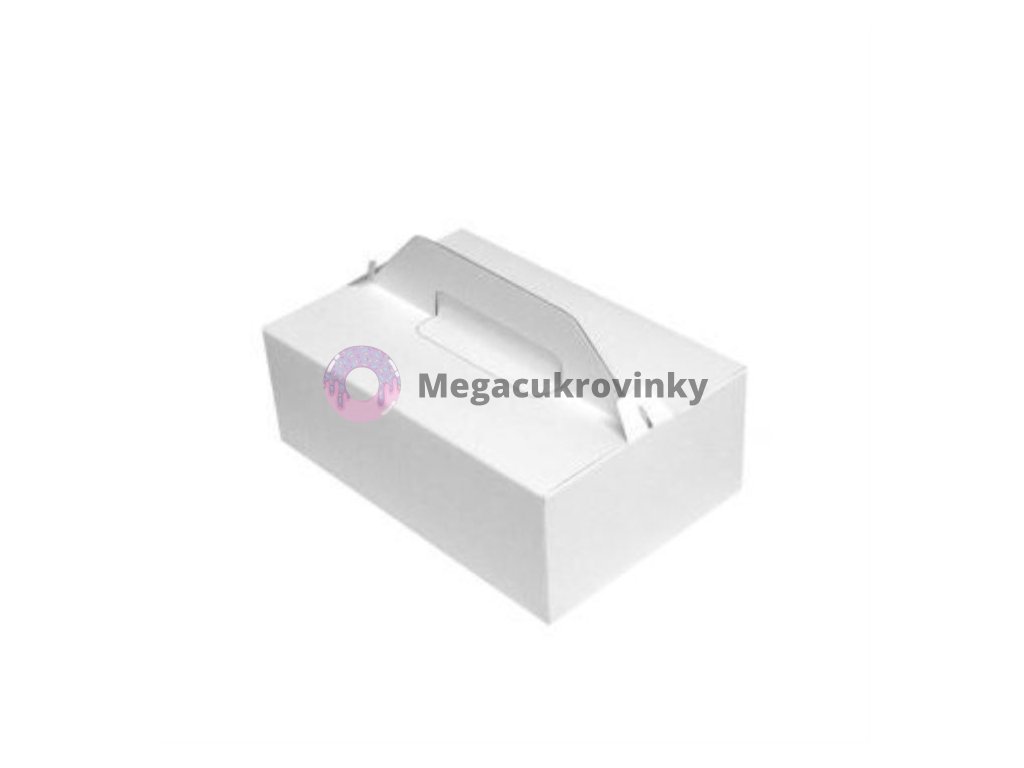 Skládací krabice s uchem (NOSIČ) je vhodná pro svatební výslužku, zákusky, dorty a pro větší množství svatebních koláčků. Lze jí použít i jako krabici na cukroví.