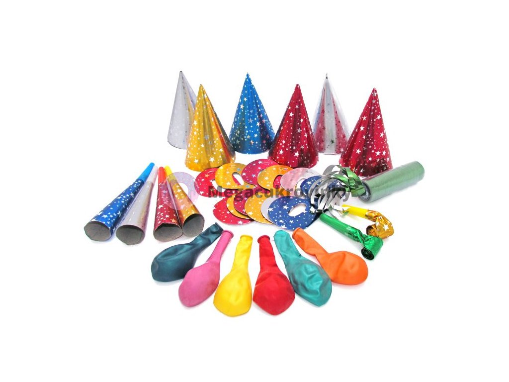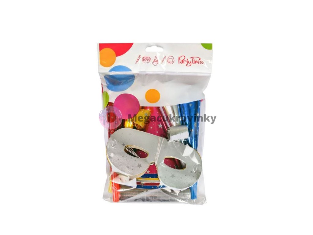 Užít si oslavu umožní párty set nejen na Silvestra, plesy, karneval. Párty sada obsahuje: 6x klobouček, 6x maska na obličej, 4x trubka, 2x píšťalka, 6x balónek, 1x serpentýna. Celkem obsahuje 25 ks skvělých párty doplňků.Doplňkové parametry