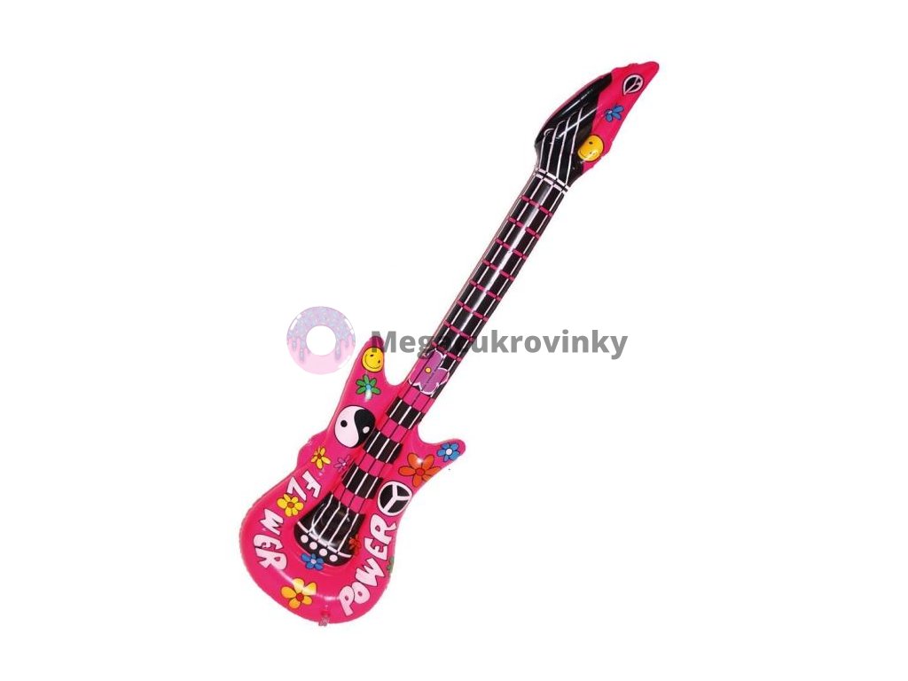 Nafukovací kytara s hipís motivem,která může posloužit jako doplněk karnevalových kostýmů hipísáků,rockerů apod., při příležitostech maškarních akcí, stužkovacích večírcích nebo párty u bazénů. Kytara je nafukovací a měří 105cm.Doplňkové parametry