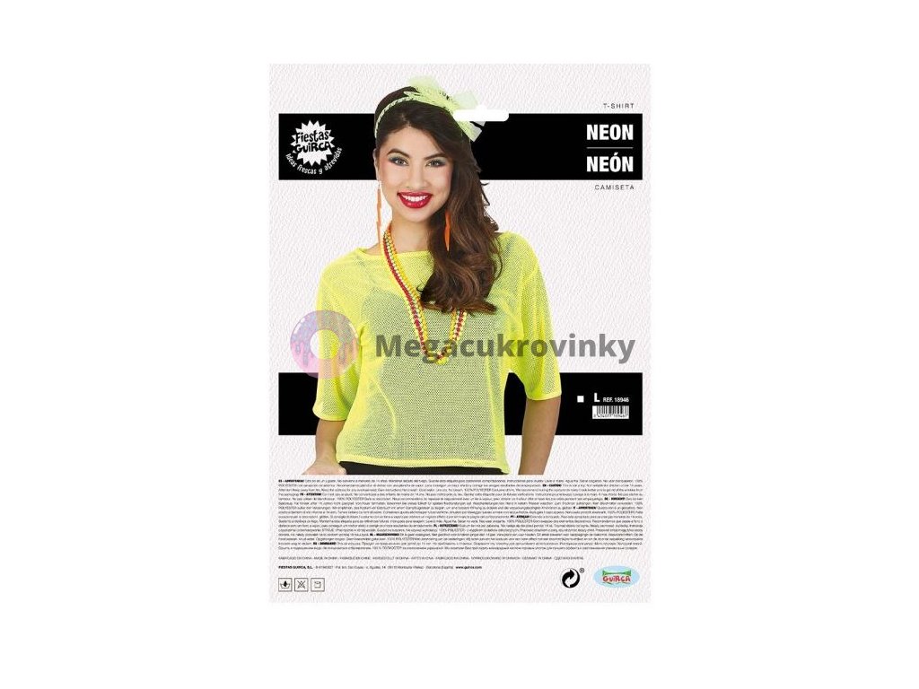 Žluté siťované retro tričko – 80.léta – disco Žluté retro síťované tričko. Vhodné na retro párty. Jdete na retro párty a nevíte co na sebe? Tohle je ideální kostým. Oživte svůj vzhled odvážným stylem s tímto síťovaným žlutým retro tričkem, které propůjčí vašemu outfitu výrazný nádech minulosti. Síťovaný top je skvělým způsobem, jak vyjádřit svůj jedinečný styl a vytvořit výrazný a odvážný look pro různé události, jako jsou hudební festivaly, tématické párty nebo večerní vystoupení. Velikost: L Materiál 100% polyesterDoplňkové parametry