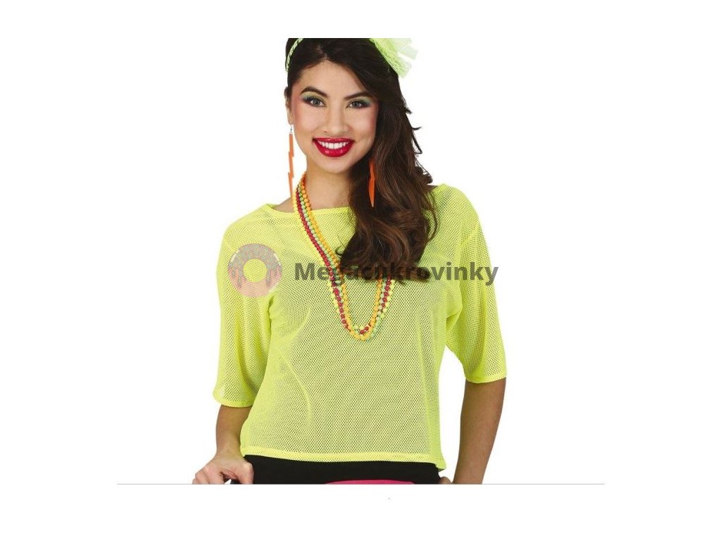 Žluté siťované retro tričko - neon - 80.léta - disco