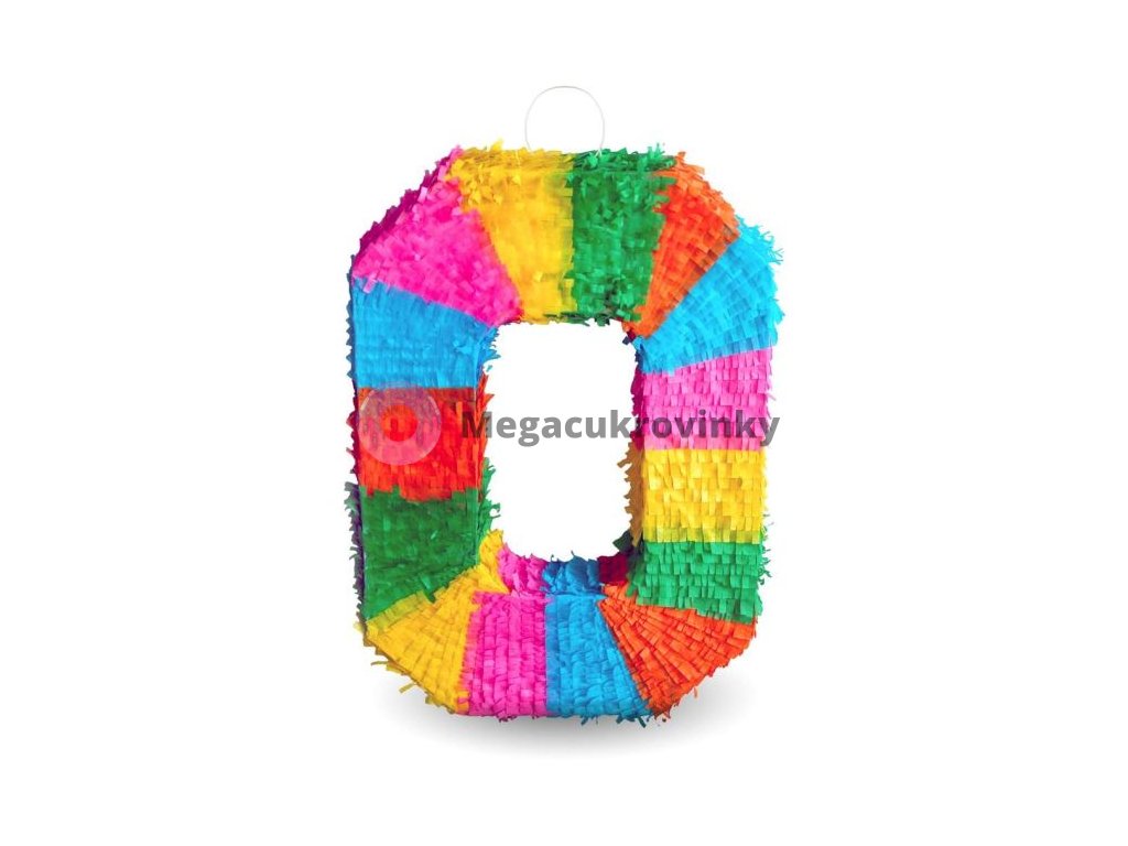 Piňata číslo " 0 " barevná - rozbíjecí, 50x35x7,5 cm