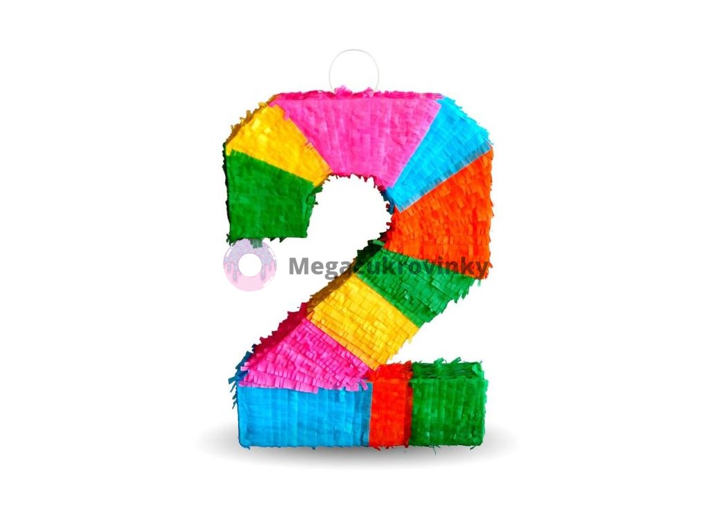 Piňata číslo " 2 " barevná - rozbíjecí, 50x35x7,5 cm