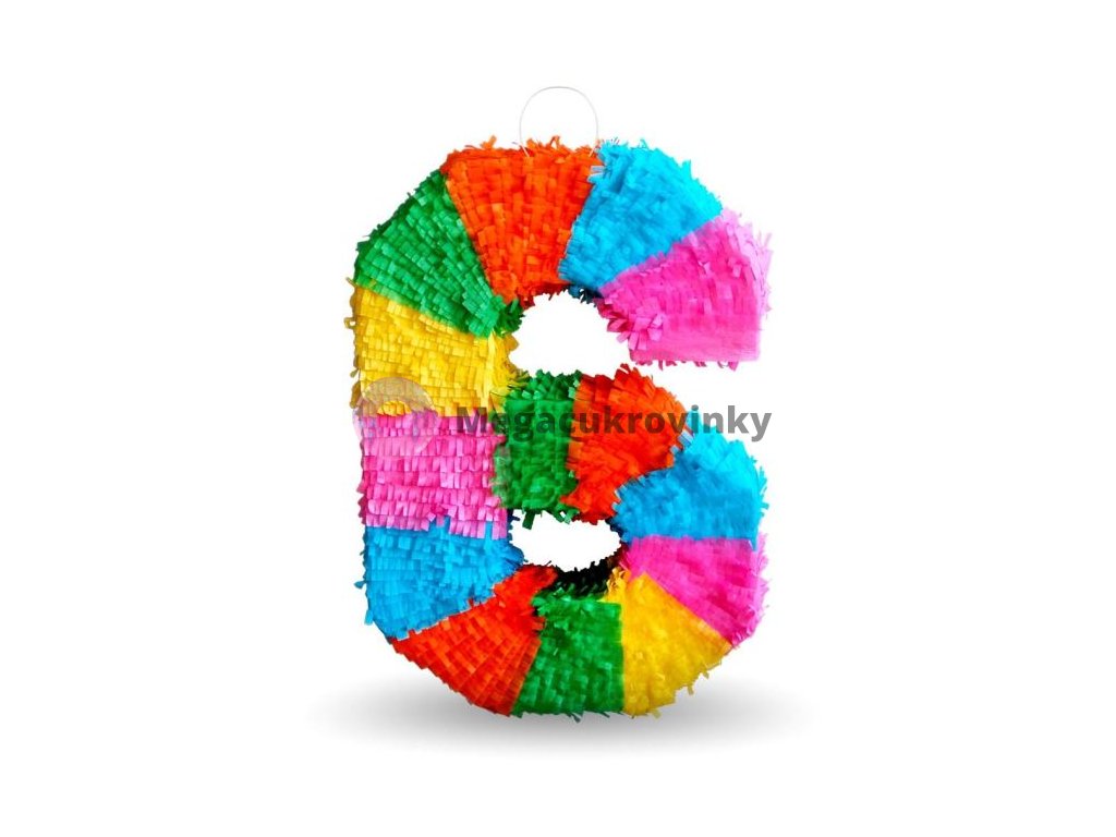 Piňata číslo " 6 " barevná - rozbíjecí, 50x35x7,5 cm