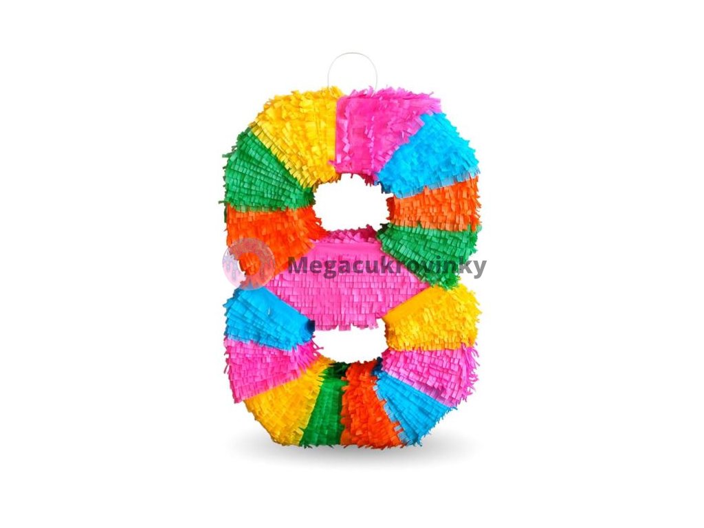 Piňata číslo " 8 " barevná - rozbíjecí, 50x35x7,5 cm
