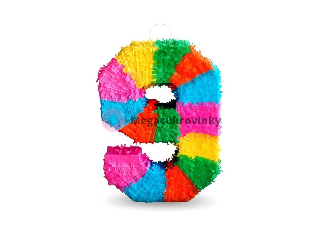 Piňata číslo " 9 " barevná - rozbíjecí, 50x35x7,5 cm
