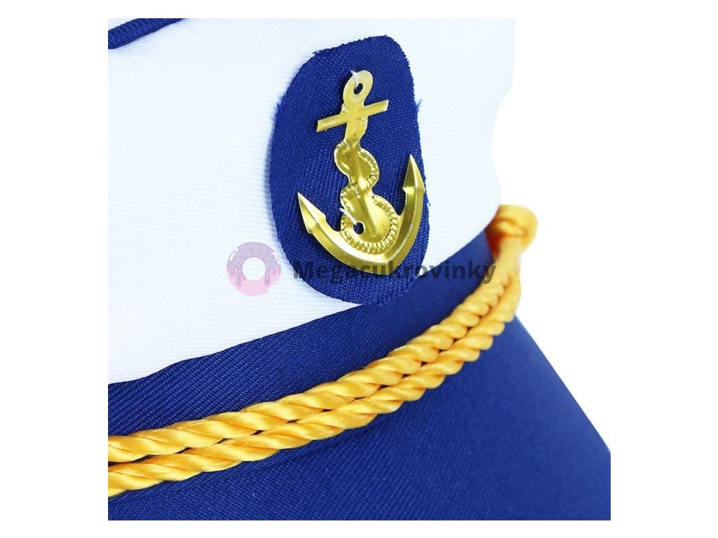 Stylová námořnická čepice pro malé námořníky! Bílá námořní čepice s modrým kšiltem a lemováním je vpředu dekorována zlatou podkovou. Díky této nepřehlédnutelné čepici budeš hvězdou karnevalu a určitě ohromíš všechny své kamarády!Podrobné informace o produktu získáte kliknutím .