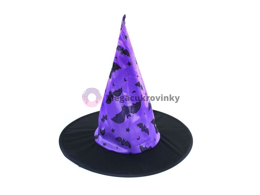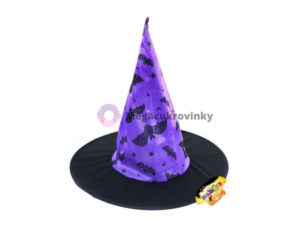 Úžasný čarodějnický klobouk s potiskem ve tvaru netopýrů. Ideální doplněk pro všechny malé čaroděje na tradiční pálení čarodějnic a také na halloweenský večírek nebo karneval!