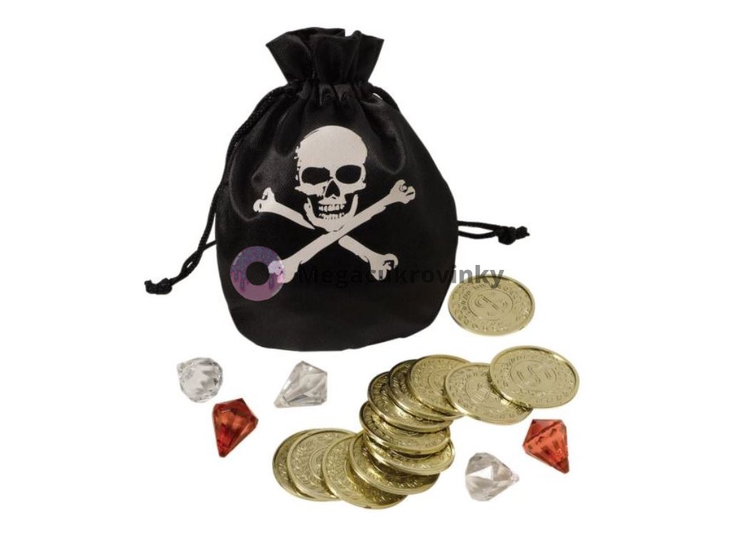 Pirátský měšec s mincemi a drahokamy - 17 ks