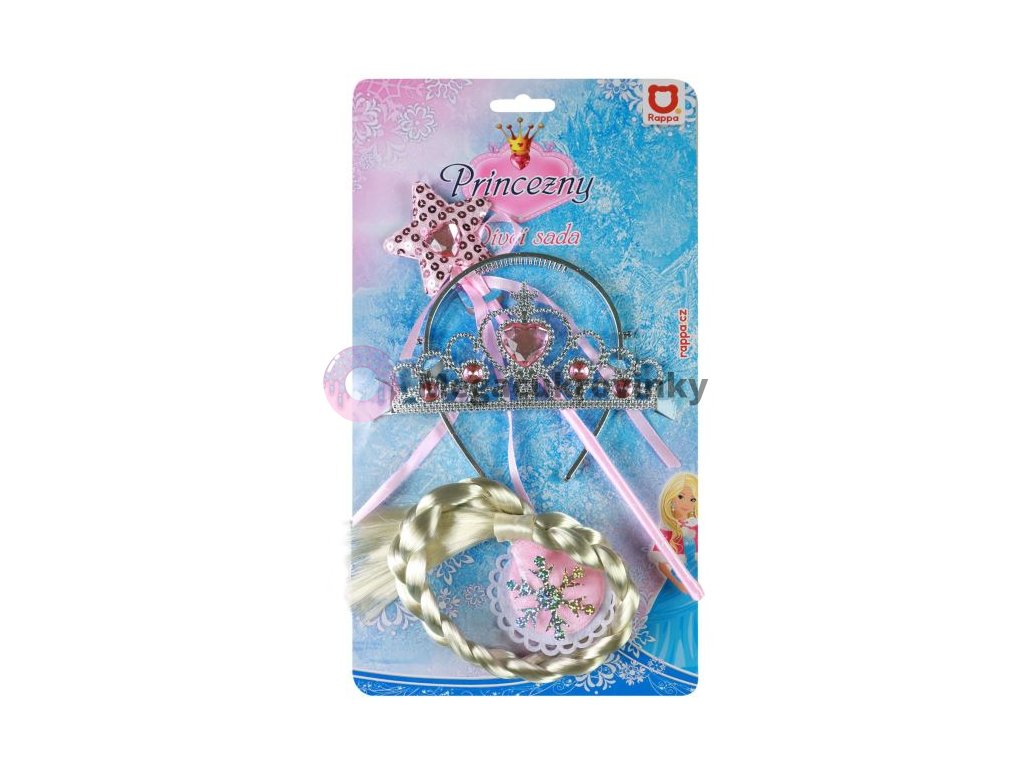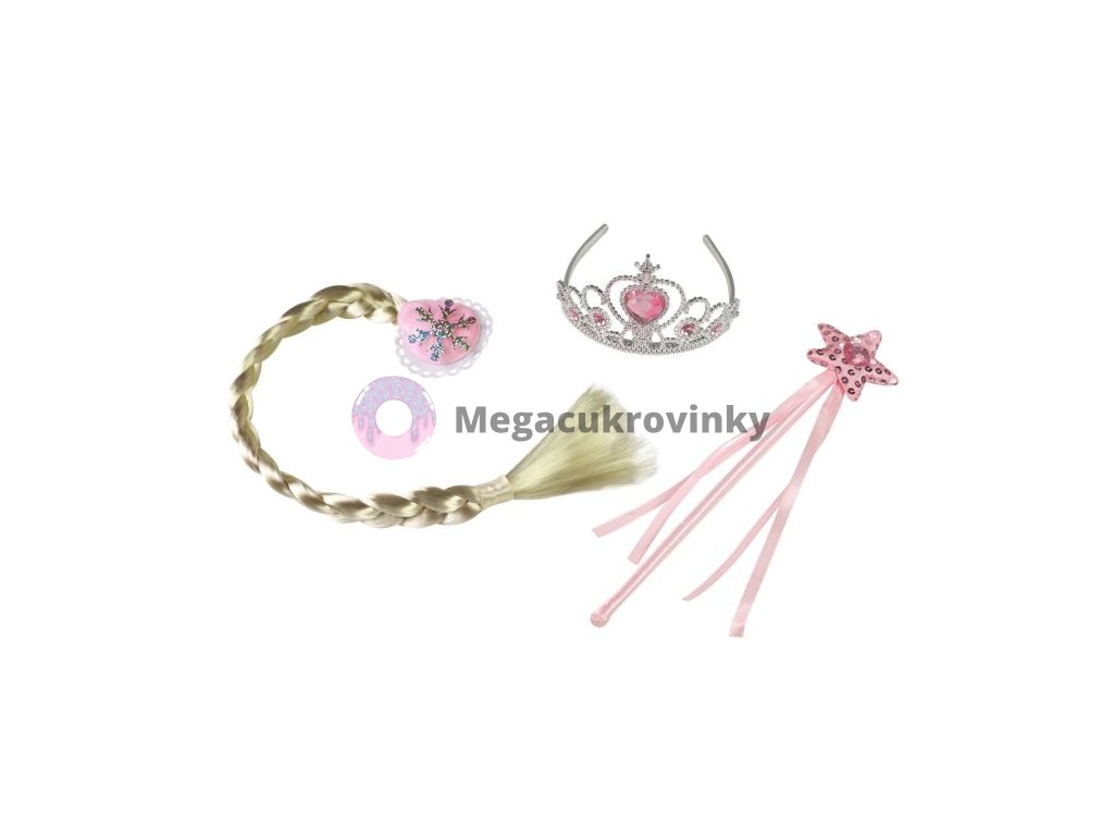 Překrásný set korunky, hůlky a copu pro malé princezny! Korunka je dekorována ozdobnými kamínky v růžové barvě. Délka copu je cca 62 cmPodrobné informace o produktu získáte kliknutím .