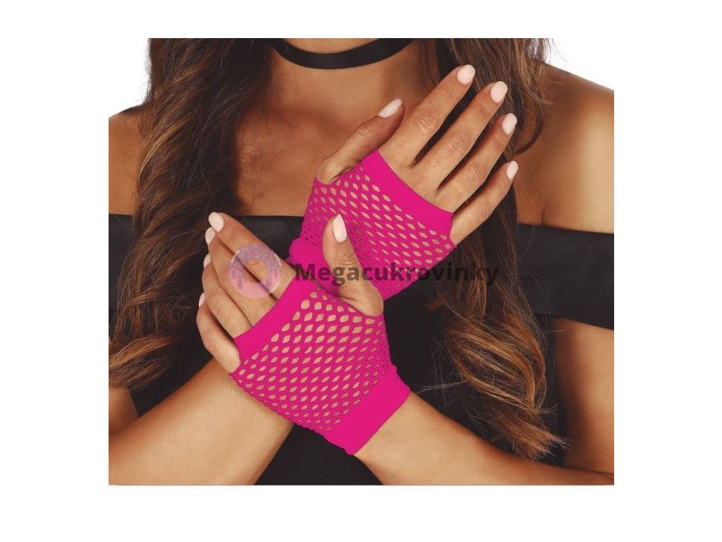 Retro síťované rukavice - neonové růžové - 80.léta - disco Retro síťované rukavice - neonové růžové - 80.léta - disco Krátké rukavičky, síťované, k zápěstí. Tyto růžové síťované rukavice k zápěstí jsou pěkným doplňkem vašeho kostýmu z 80.let. Ideální na karneval, maškarní párty nebo tematickou párty. Jednoduchý, elegantní doplněk dokáže udělat spoustu parády. Přesně jako síťované rukavice bez prstů, které by měla mít každá slečna a paní doma v šuplíku. Když ne na karneval nebo Halloween, pak třeba na večerní debatu s manželem se na rukavice výborně hodí. Domácí diskuze by se totiž měly vést zásadně v rukavičkách. Síťované rukavice bez prstů jsou vyrobeny ze 100% polyesteru, lze je prát v ruce. Univerzální velikost.Doplňkové parametry