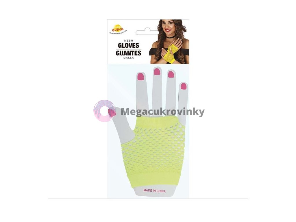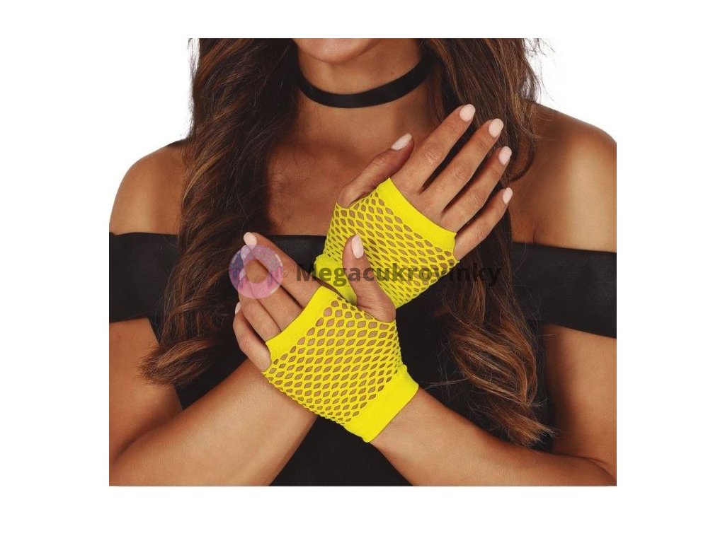 Retro síťované rukavice - neonové žluté - 80.léta - disco Retro síťované rukavice - neonové žluté - 80.léta - disco Krátké rukavičky, síťované, k zápěstí. Tyto žluté síťované rukavice k zápěstí jsou pěkným doplňkem vašeho kostýmu z 80.let. Ideální na karneval, maškarní párty nebo tematickou párty. Jednoduchý, elegantní doplněk dokáže udělat spoustu parády. Přesně jako síťované rukavice bez prstů, které by měla mít každá slečna a paní doma v šuplíku. Když ne na karneval nebo Halloween, pak třeba na večerní debatu s manželem se na rukavice výborně hodí. Domácí diskuze by se totiž měly vést zásadně v rukavičkách. Síťované rukavice bez prstů jsou vyrobeny ze 100% polyesteru, lze je prát v ruce. Univerzální velikost.Doplňkové parametry
