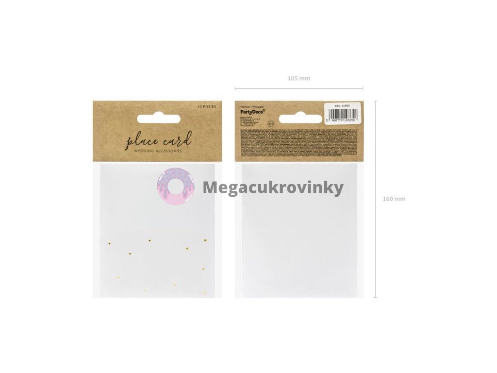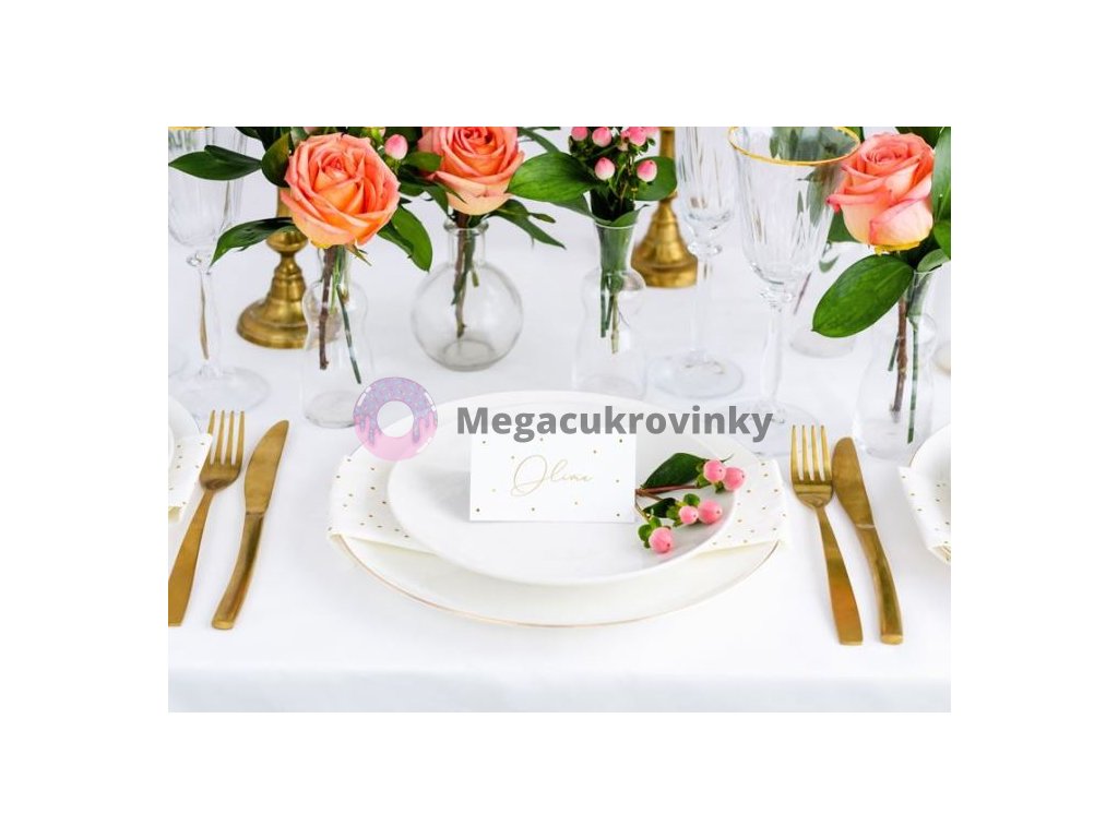 Svatební vizitky na stůl – Svatba – 10 ks. Lámete si hlavu s tím jak rozesadit hosty u svatební tabule? Vyřešte vše hravě a rychle dopsáním jmen na již vytvořené vizitky. Vizitky na stůl z perleťového bílého papíru se vzorem. Rozměry : 9,5×5,5 cm Balení : 10 ksDoplňkové parametry